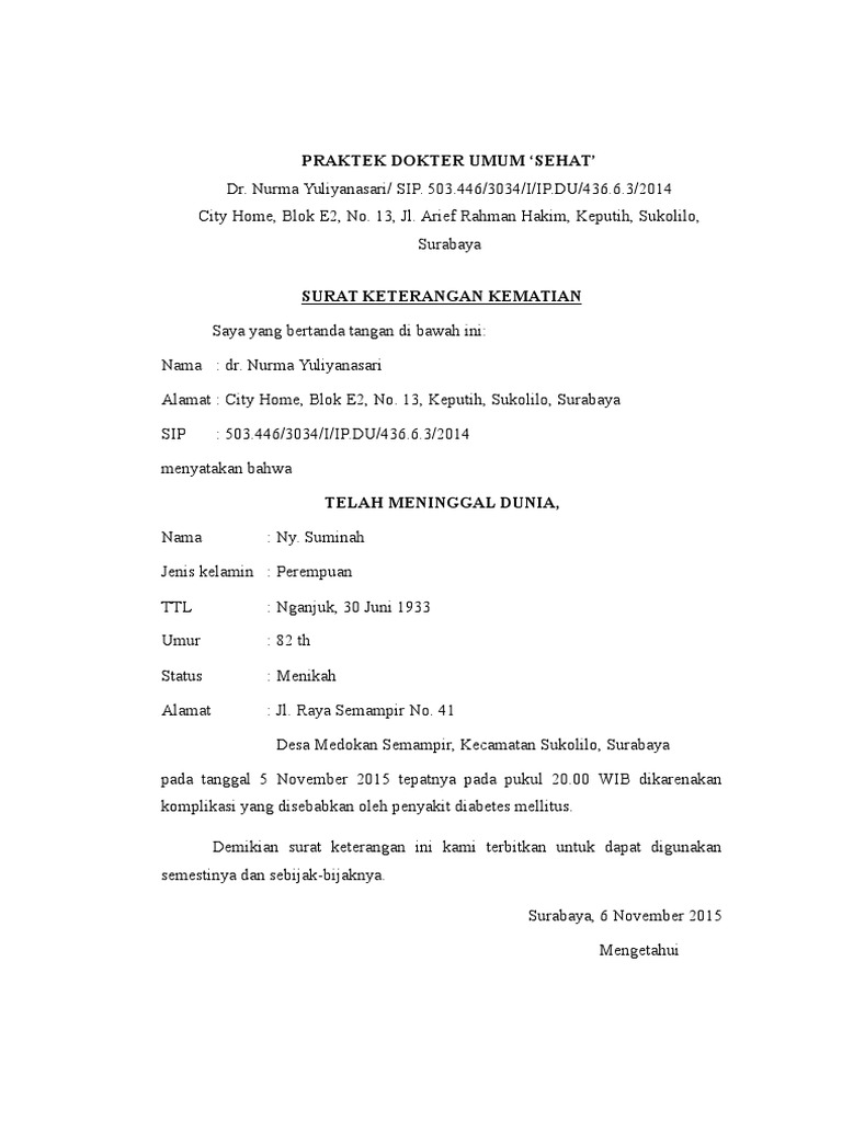 Surat Kematian Pasien from imgv2-2-f.scribdassets.com Meminta surat pengantar dari rt dan rw. Silahkan anda download contoh surat keterangan tanah dari kepala desa dibagian bawah postingan ini. Berikut contoh di desa tijayan. Agar dapat memperoleh sebuah surat pengantar dari desa untuk pembuatan kartu bpjs. Ok apakabar sobat belajar office ?. Formulir surat keterangan kematian (f2.29) adalah formulir yang diterbitkan oleh desa/kelurahan sebagai formulir keluaran (output) tahap i dari anak ke, diisi/ditulis angka/kode urutan kelahiran jenazah dari satu ayah dan satu ibu pada kotak yang tersedia, kemudian lingkari angka pilihan. Nonton surat dari kematian (2020) gratis di layarkaca21, pusat nonton film movie terbaru bioskop atau serial tv terlengkap dengan subtitle indonesia / subtitle inggris. Sebagaimana kita ketahui bersama, surat keterangan usaha diterbitkan oleh biasanya para pelaku usaha akan meminta surat keterangan dari kepala desa untuk keperluan pengajuan pinjaman modal usaha ke salah satu lembaga keuangan.